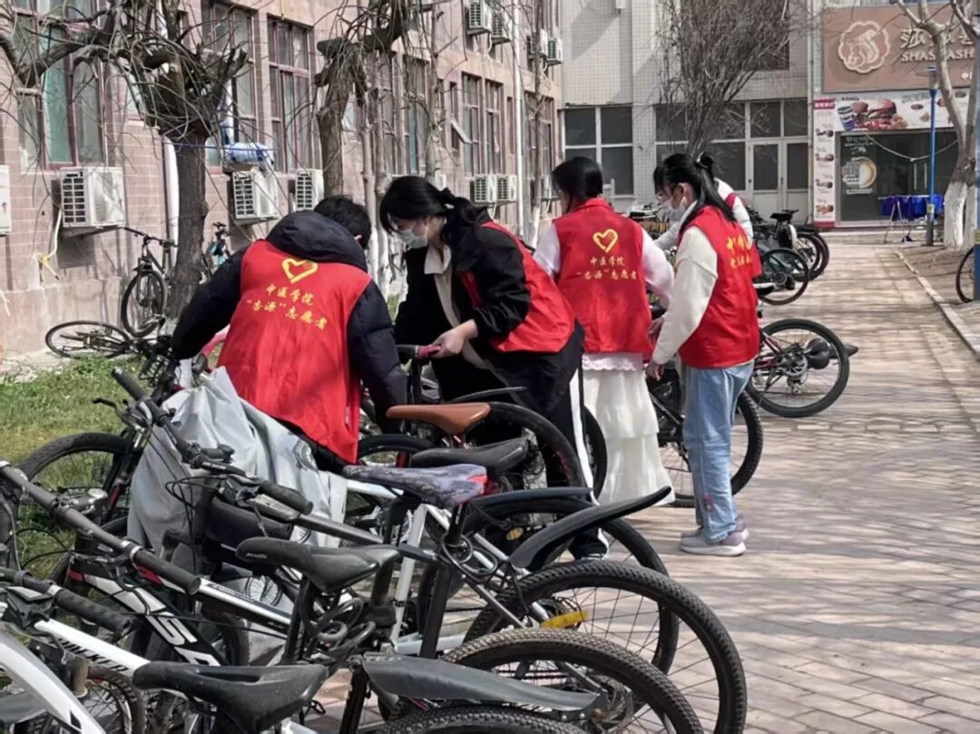 与此同时,在宿舍生活区,志愿者们对楼前楼后的公共区域进行了集中整治。大家分工明确,清扫路面垃圾、将随意停放的自行车搬运至指定区域并摆放整齐、捡拾草地上的塑料袋、饮料瓶等废弃物,用实际行动诠释雷锋精神的时代内涵,为同学们返校后营造干净、舒心的生活环境。