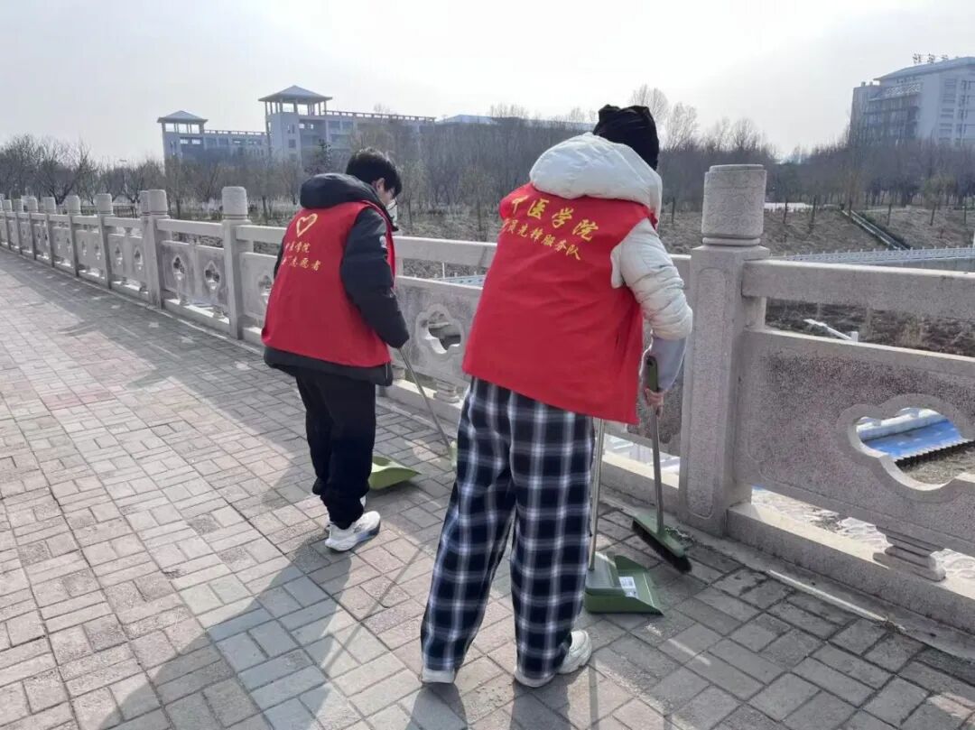 在健桥区域,志愿者们对桥面进行了细致清理。大家仔细清扫落叶、纸屑等杂物,确保桥面干净整洁。经过一番努力,健桥显得格外清爽,仿佛以崭新的姿态迎接返校的师生,送上了一份温暖的“开学见面礼”。